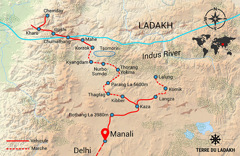 Ce circuit est difficile bienque relativement court. La vraie difficulté réside dans le passage du Parang La, col mythique de l’Himalaya !