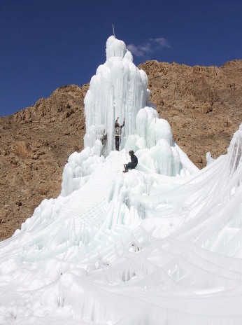 Le premier Ice Stupa a été inauguré au Ladakh en 2015, et a permis le stockage de deux millions de litres d’eau, qui ont permis d’arroser des plantations de peupliers ! Sonam Wangchuk s’est vu attribuer grâce à ce projet le prix Rolex 2016.