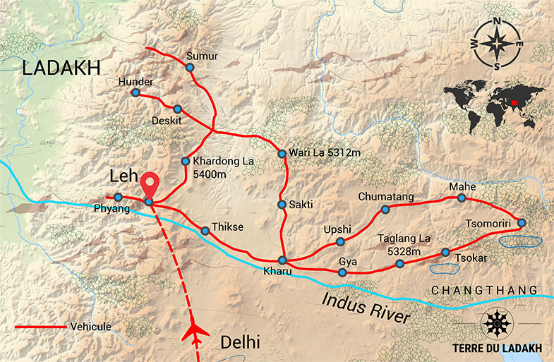 Vos bagages seront avec vous tout au long du voyage, dans la voiture ou le minibus. Vous aurez aussi la possibilité de laisser une partie de vos affaires à Leh ou Phyang en début de voyage, et de les récupérer en fin de séjour.